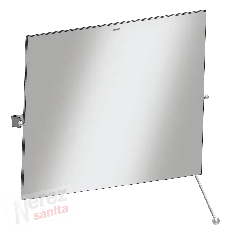 Sklopné zrcadlo, pro přisazenou montáž, zrcadlo a držák kompletně vyrobeny z chromniklové oceli, zrcadlo vysoce leštěné, držák satinovaný, tloušťka materiálu zrcadla 8,0 mm, tloušťka materiálu držáku 4,0 mm, zrcadlo s polystyrénovou deskou vespod se skrytým upevněním, dodatečné vyztužení prův. Na zadní straně připevněná nerezová vzpěra 1,5 mm, sklopná díky předem smontované rukojeti, rukojeť lze namontovat vpravo nebo vlevo, včetně nerezových šroubů a hmoždinek.